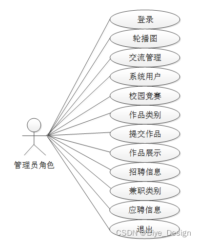 web后台管理上的管理员是维护整个校园自媒体信息服务平台中所有数据信息的。管理员角色用例如图2-5所示。