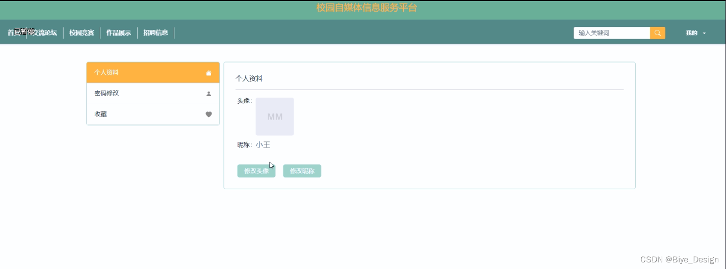 (2)校园自媒体信息服务平台中的web后台管理中的前端使用的是JavaScript框架,它配合ajax和jquery可以美化页面设计。
