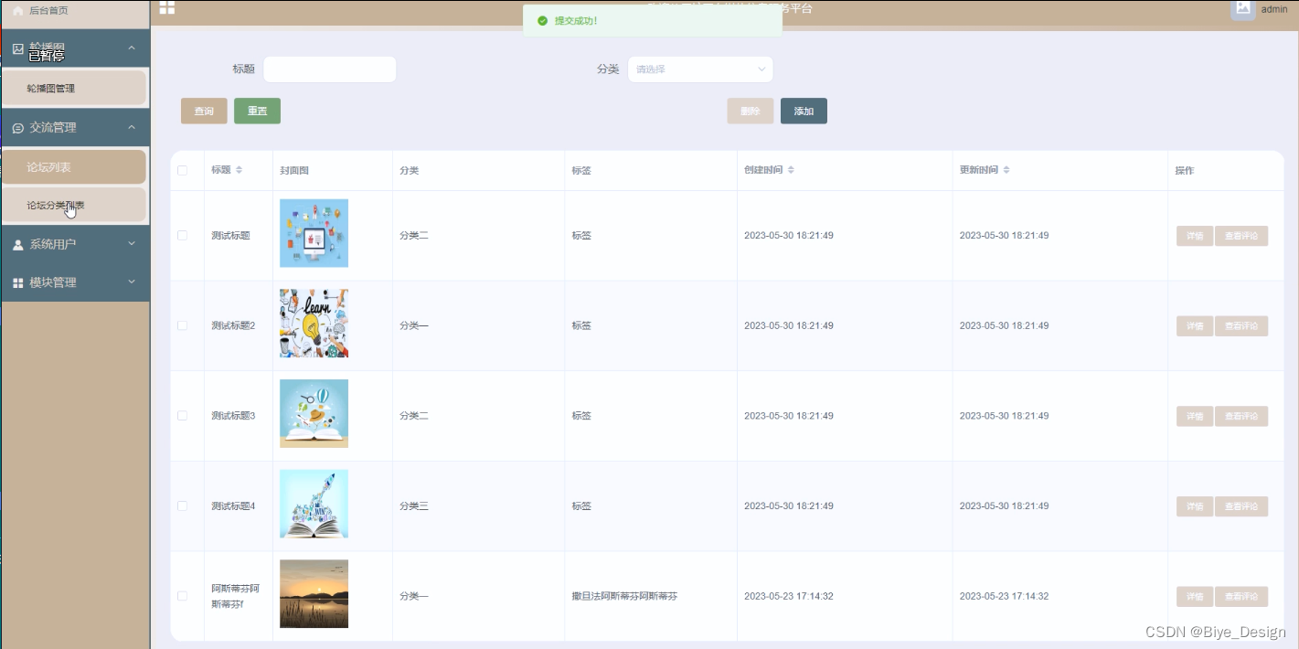 (3)交流管理:管理员点击“交流管理”菜单可以对其下论坛列表和论坛的分类进行增删改查。