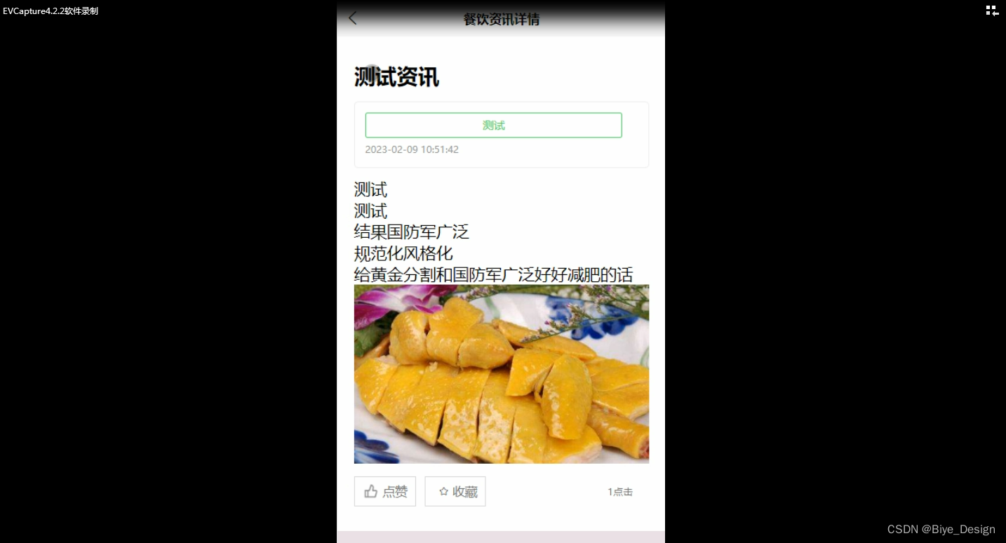 餐饮资讯:用户进入系统可以搜索查看管理员发布的餐饮资讯信息,对喜欢的文章可进行收藏、点赞、评论等操作,如图5-7所示。