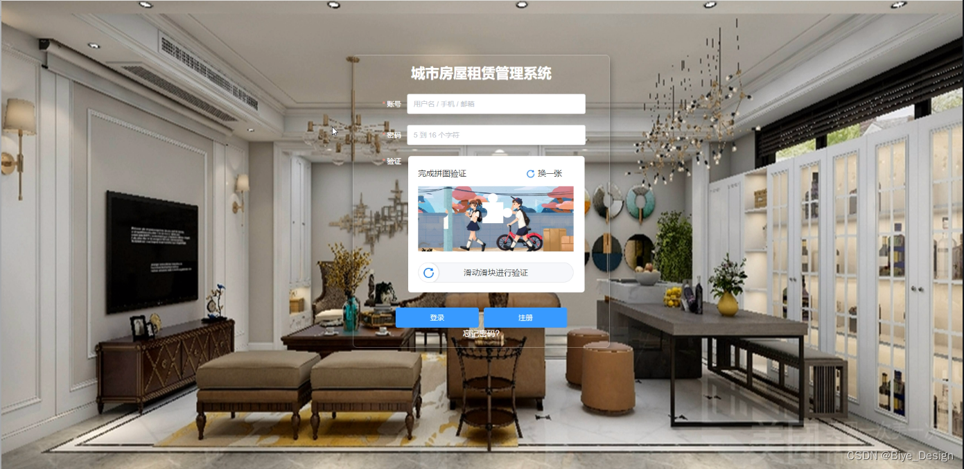 管理员登录,通过填写注册时输入的账号、密码、滑动滑块进行验证码进行登录,如图5-4所示。