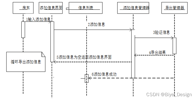 管理员可以对租赁信息等进行信息的添加,租客和房东也可以对自己权限内的信息进行添加,输入信息后,系统会自行验证输入的信息和数据,若信息正确,会将其添加到数据库内,若信息有误,则会提示重新输入信息,添加信息流程如图3-4所示。