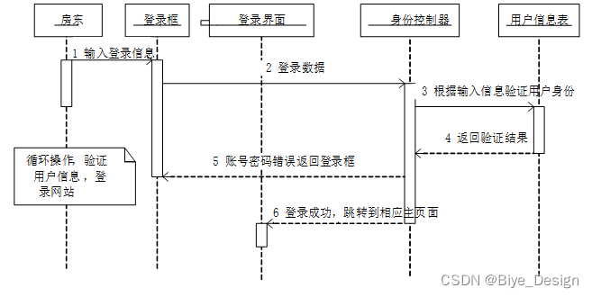 租客打开并进入系统后,会先显示登录界面,输入正确的租客名和密码,系统自动检测信息,若信息无误,则租客会进入系统功能界面,进行操作,否则会提示错误无法登录,操作流程如图3-3所示。