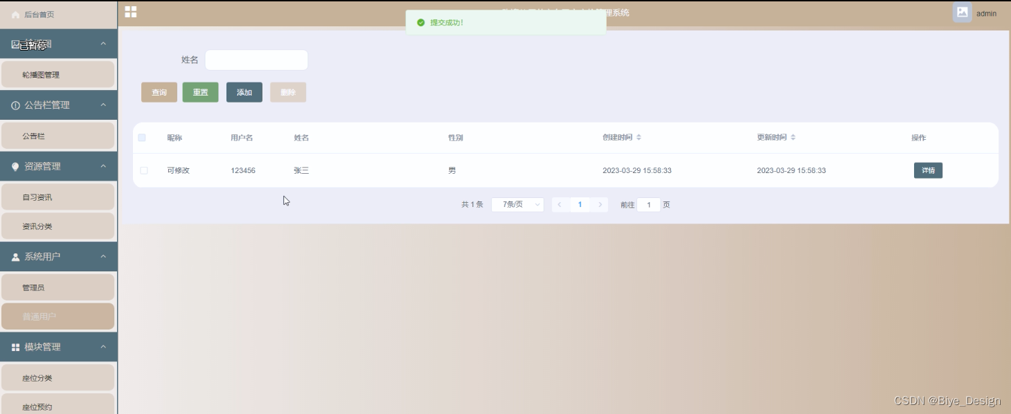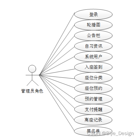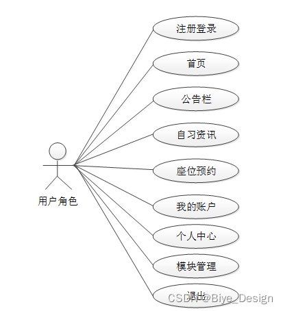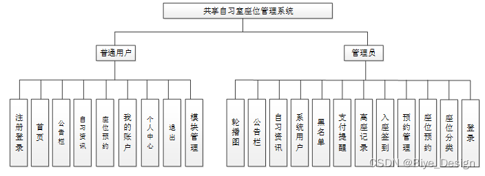 共享自习室座位管理系统从角色上划分为了管理员以及普通用户两种角色。