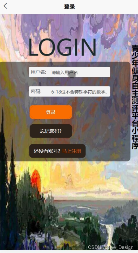 在微信小程序的青少年健身自主测评平台中,用户可以通过输入账号、密码和其他信息来完成登录,如图5-1所示。