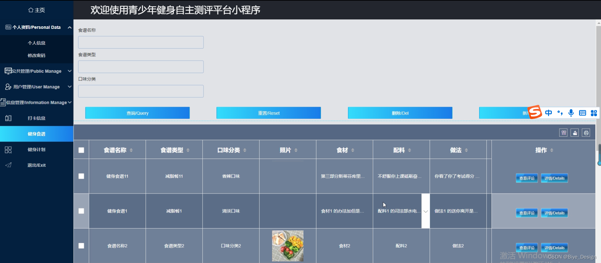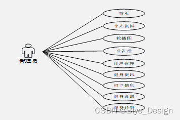 通过管理员功能页面,用户可以查看首页、个人资料、公共管理(轮播图、公告栏)用户管理(管理员、普通用户)信息管理(健身资讯、资讯分类)打卡信息、健身食谱、健身计划等,并且可以根据需要进行相应的操作,如图5-7所示。