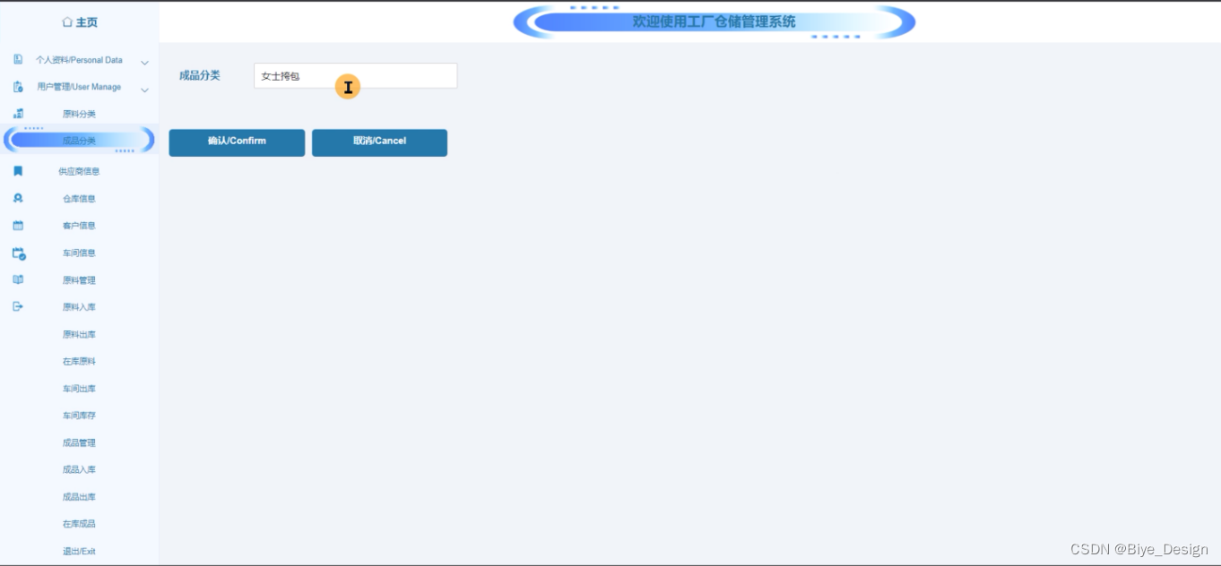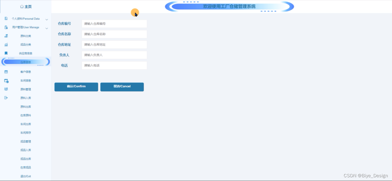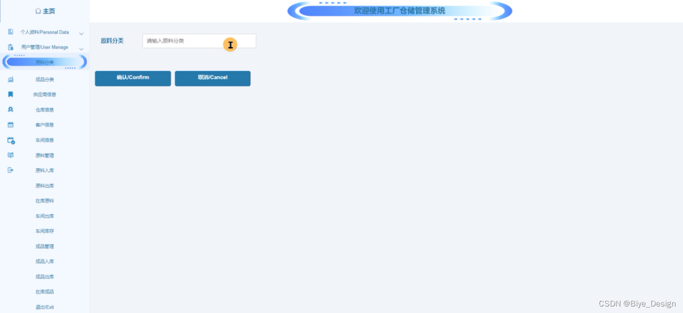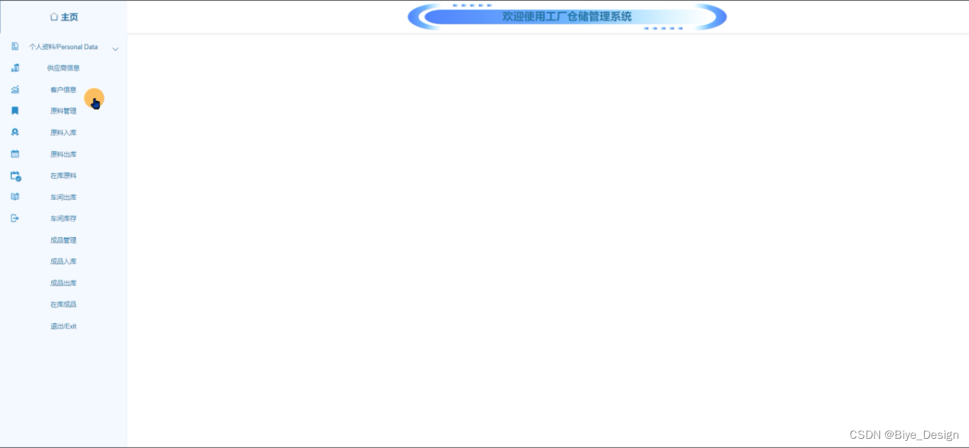 工作人员登录进入工厂仓储管理系统之后,就可以对所有的信息进行查看,可以查看到主页、个人资料、供应商信息、客户信息、原料管理、原料出库、原料入库、在库原料、车间出库、车间库存、成品管理、成品出库、成品入库、在库成品等,并且还可以对其进行相应的操作管理,如图5-11所示。