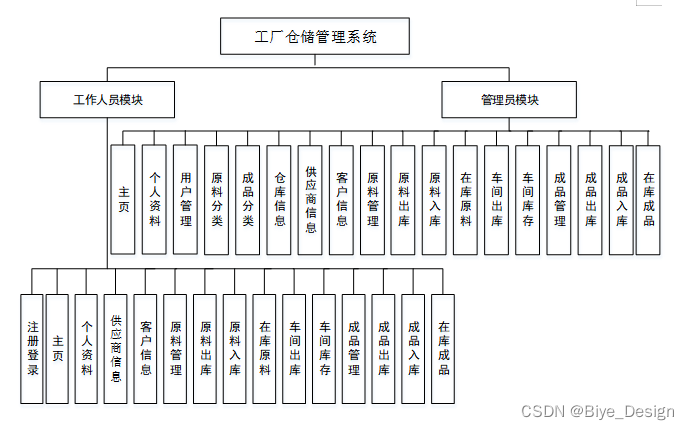 本工厂仓储管理系统主要包括两大功能模块,即管理员功能模块和用户模块。