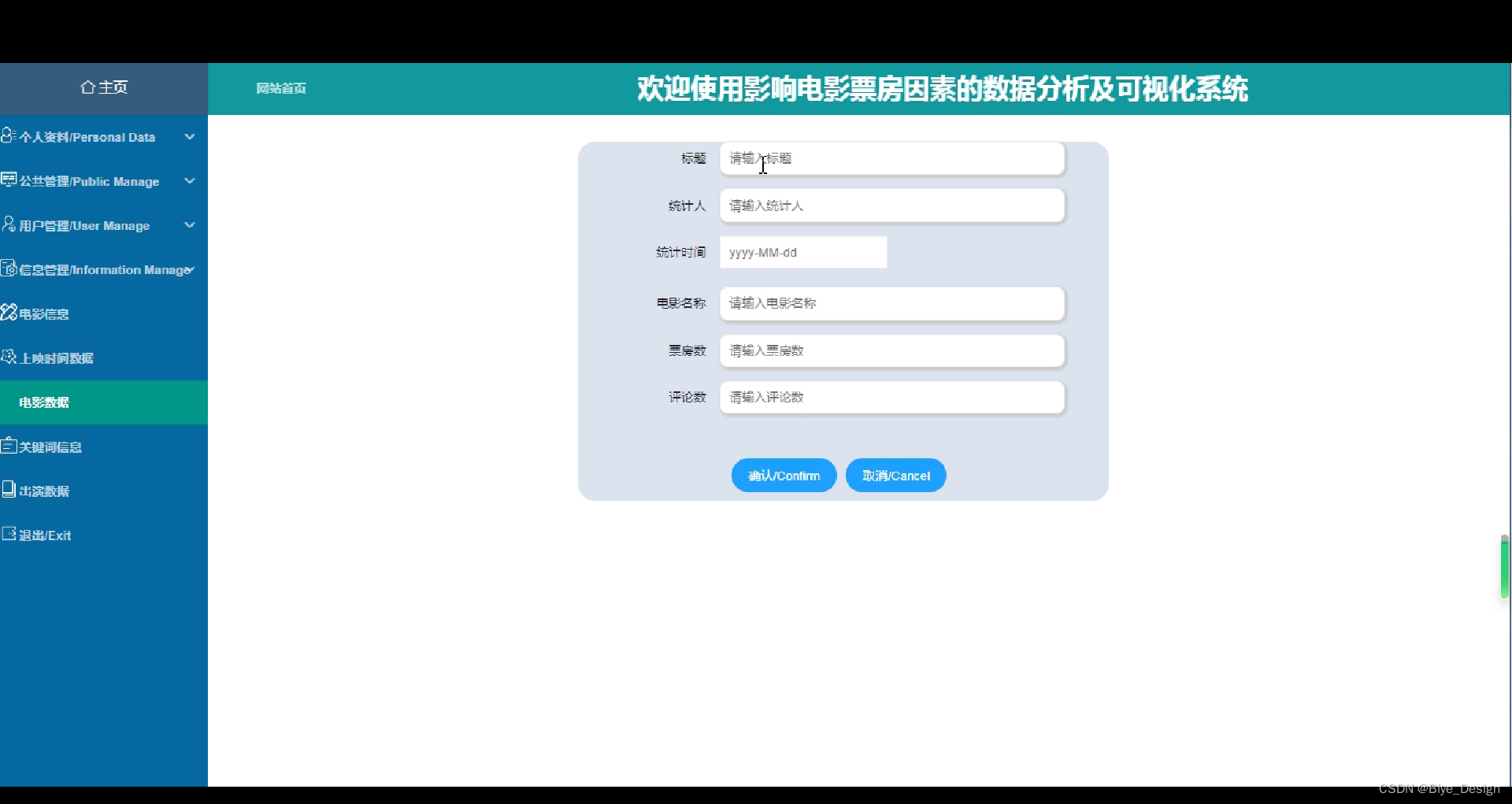 GUI, Python socket programming and other technologies, the database is MySOL database, suitable for Windows7 and above operating system. The development process follows the software engineering method, and the system is developed through the comprehensive application of Shangda tools and technology. Server-side functions include personal information, public management, user management, information management, movie information, release time data, movie data, keyword information, acting data and other functions. Including a variety of data acquisition, analysis and visual chart display. The system runs smoothly and stably, and its function is perfect. The research of this paper lays a foundation for cultivating students' data processing ability and visual analysis ability.