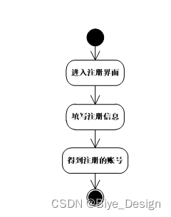 用户管理针对所有用户和管理员。未注册用户点击注册,进入注册页面填写新用户信息,得到自定义生成账号后,注册完成。未注册用户注册的活动图如下图所示。