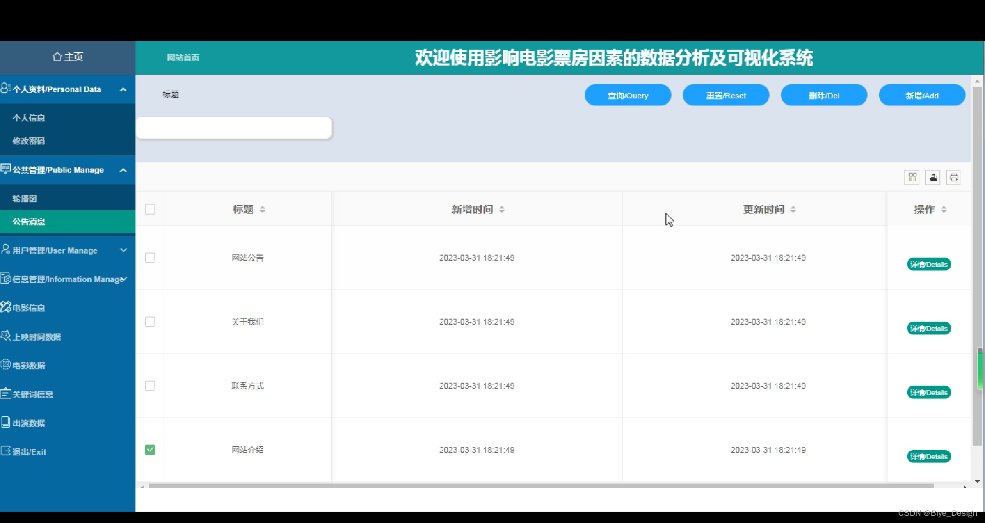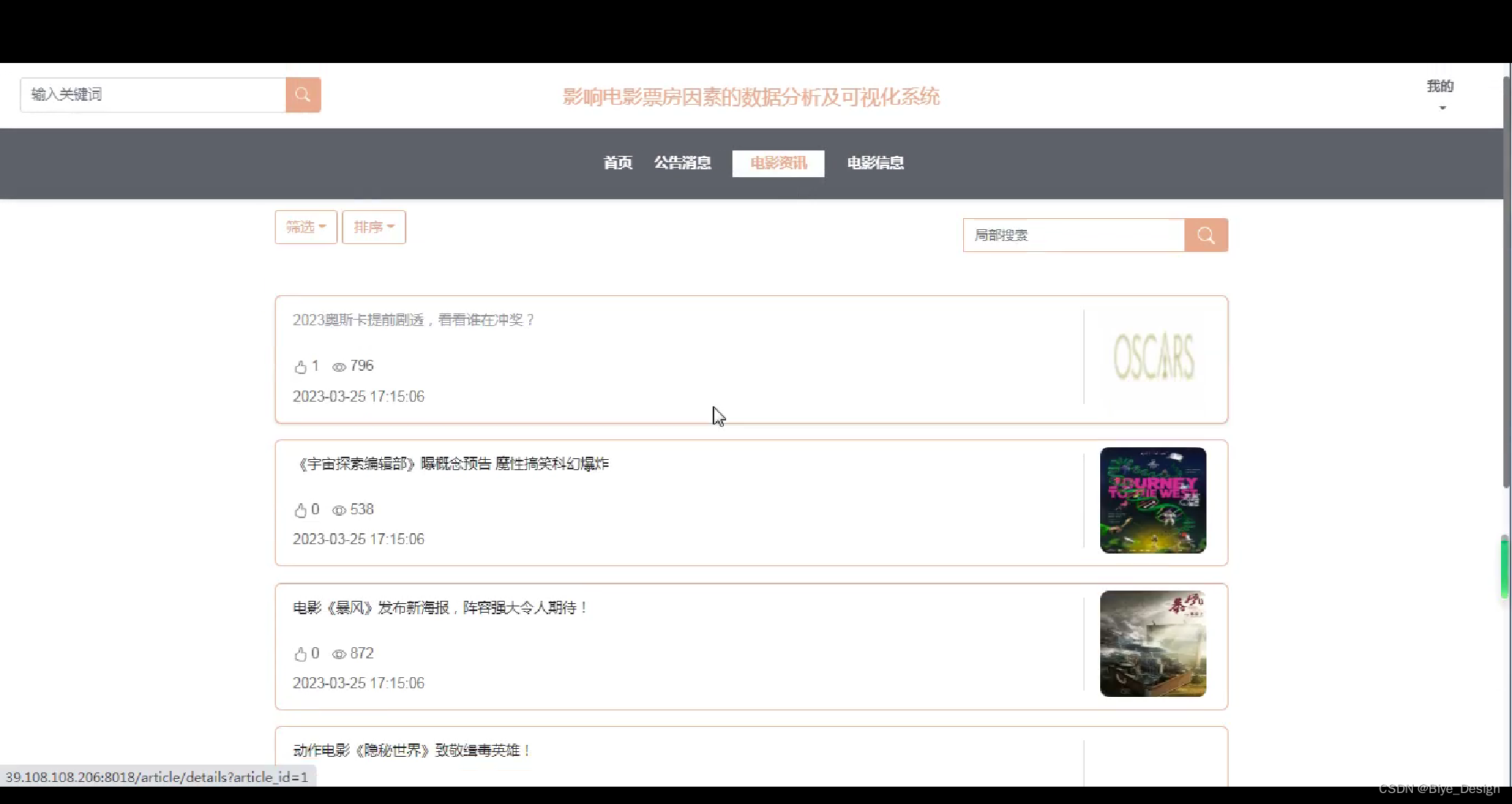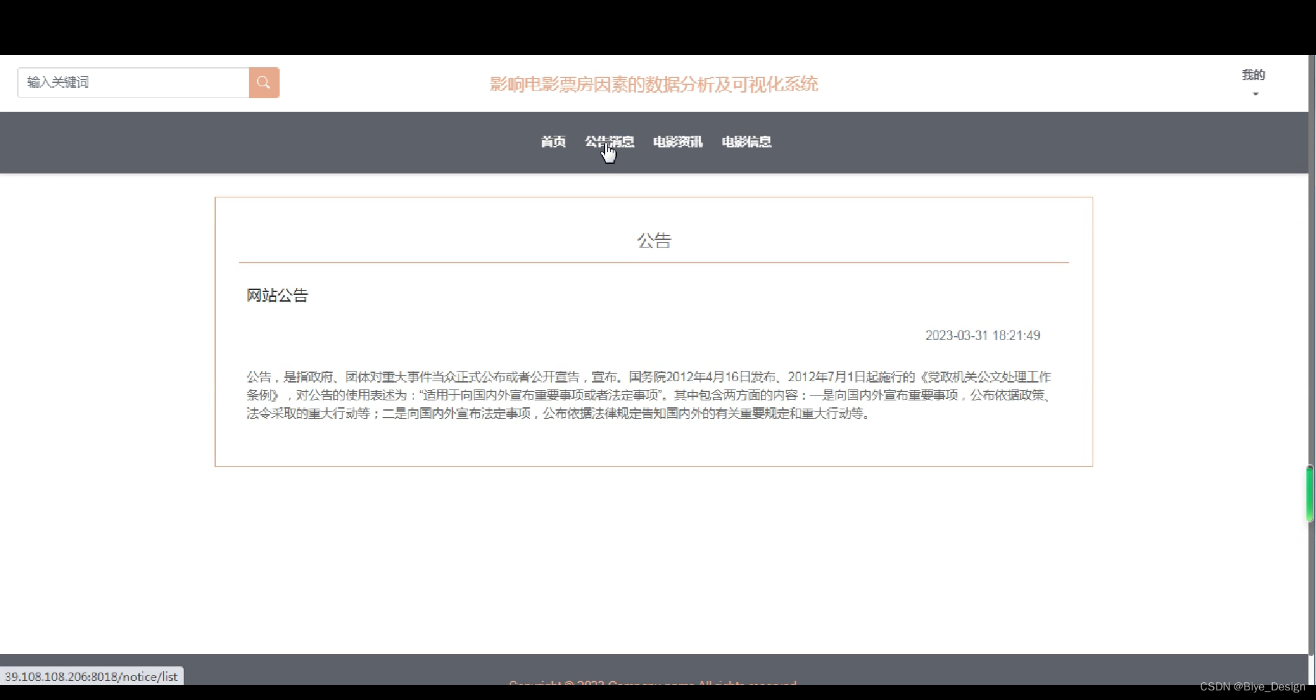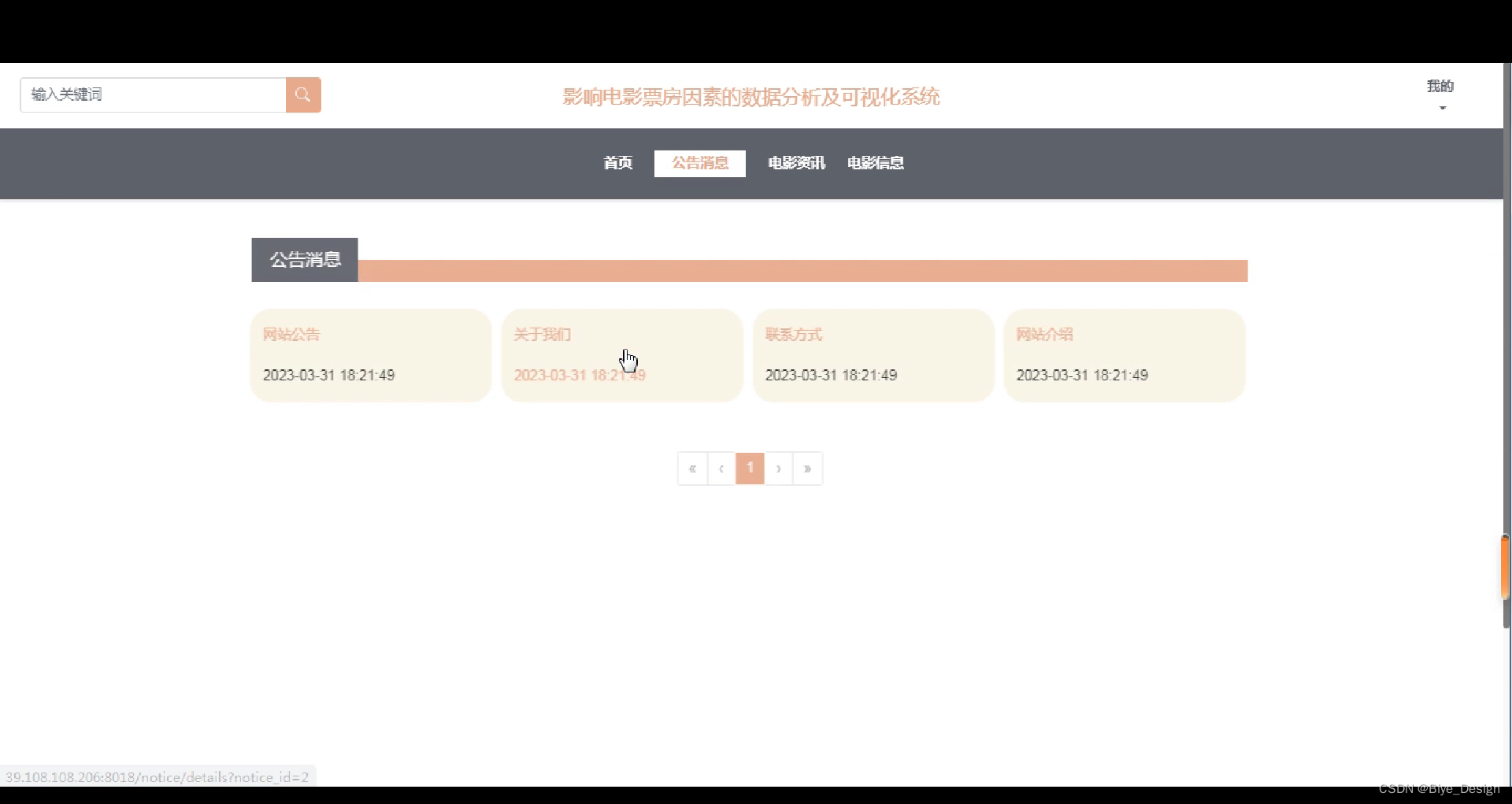 Key words: Python language; Pycharm development tools; data analysis and visualization system of factors affecting movie box offic