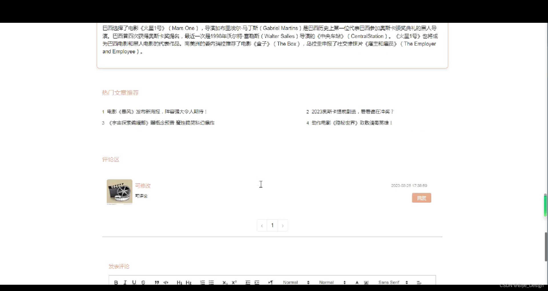 注册用户在此页面可以查看电影资讯,在电影资讯详情页面可以查看进行点赞,收藏,评论等操作,如下图所示。
