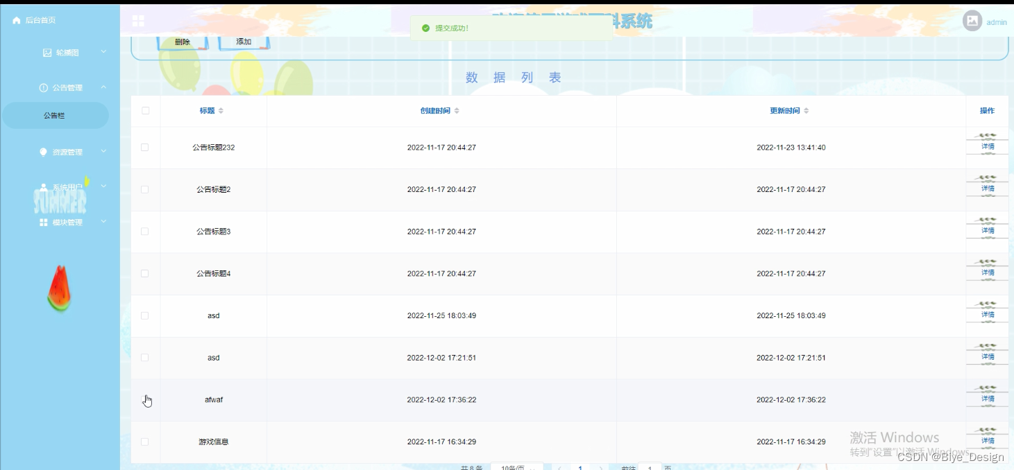| 输入完整的公告信息” | 提示“公告添加成功” | 测试公告录入是否可用 |