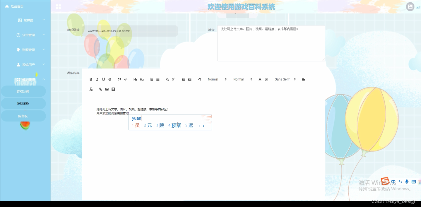 | 输入完整的游戏词条信息” | 提示“游戏词条添加成功” | 测试游戏词条录入是否可用 | |