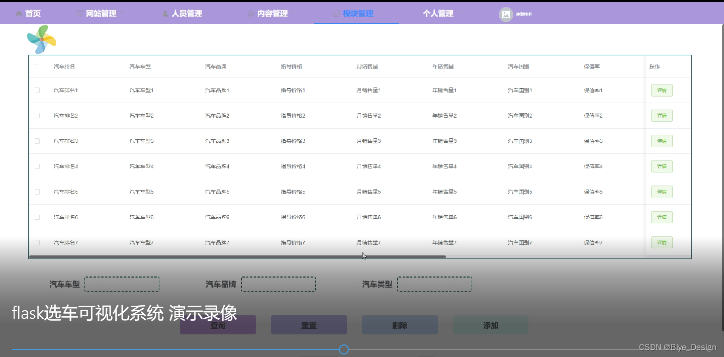 关键词:选车可视化系统;Python;Flask框架;Mysql数据库