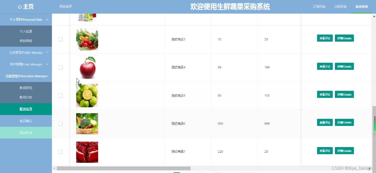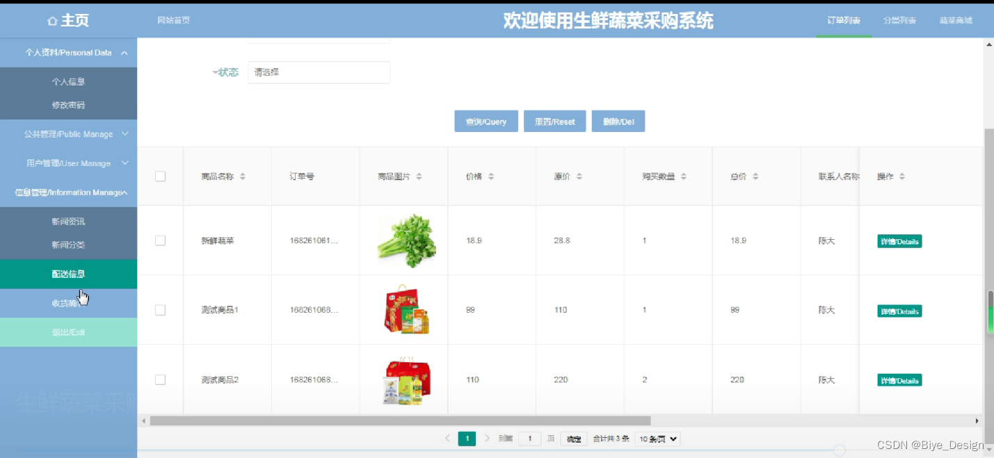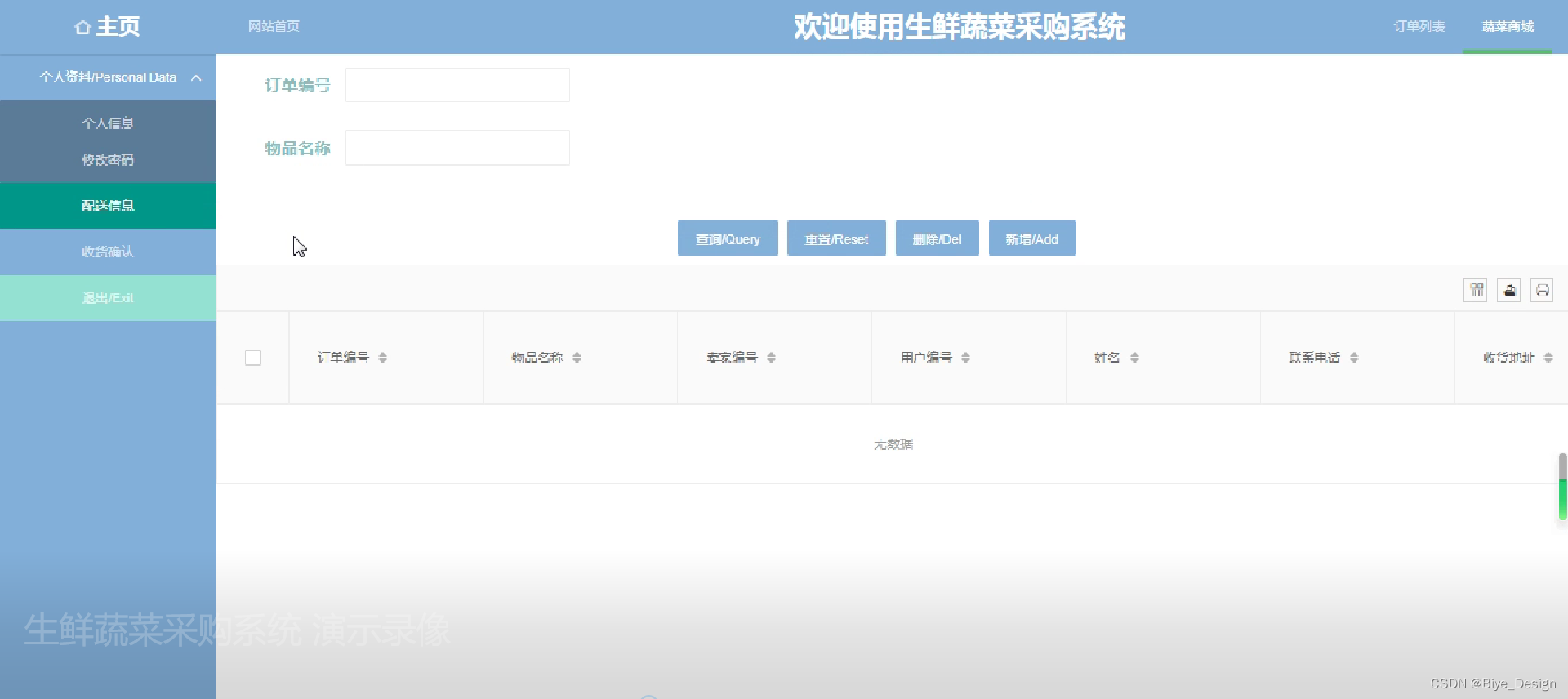 (5)配送信息管理:对生鲜蔬菜采购系统所有的订单配送信息进行管控。