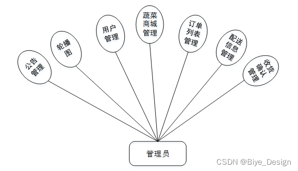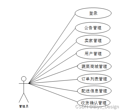 web后台管理上的管理员是维护整个生鲜蔬菜采购系统中所有数据信息的。管理员角色用例如图2-5所示。