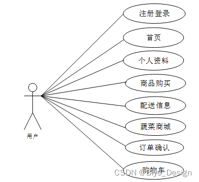 通过2.3功能的分析,得出了本生鲜蔬菜采购系统的用例图: