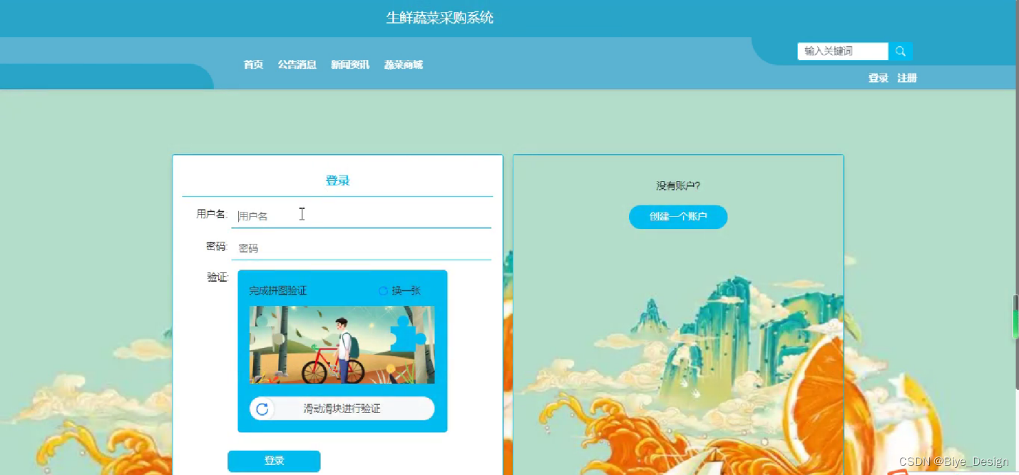生鲜蔬菜采购系统中的前台上注册后的会员是可以通过自己的账户名和密码进行登录的,当会员输入完整的自己的账户名和密码信息并点击“登录”按钮后,将会首先验证输入的有没有空数据,再次验证输入的账户名+密码和数据库中当前保存的用户信息是否一致,只有在一致后将会登录成功并自动跳转到生鲜蔬菜采购系统的首页中;否则将会提示相应错误信息,用户登录界面如下图4-3所示。
