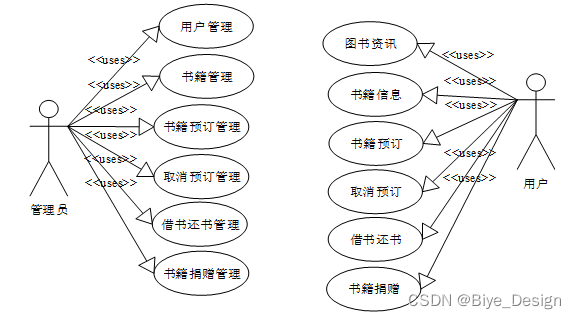 管理员模块:系统用户管理、书籍信息管理、书籍类型管理、借书还书管理、预订记录管理、取消预订管理、书籍捐赠管理。
