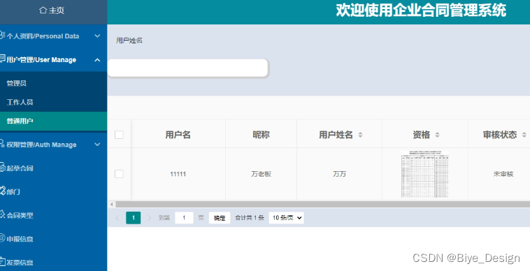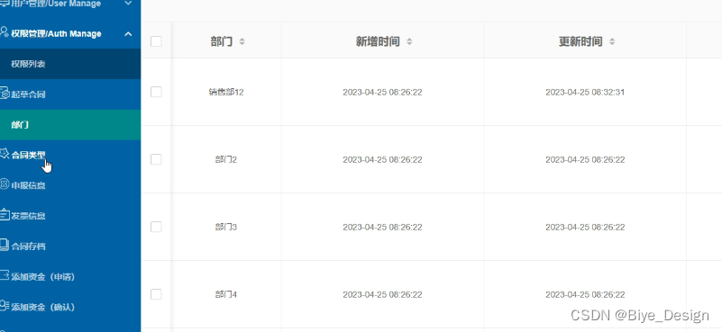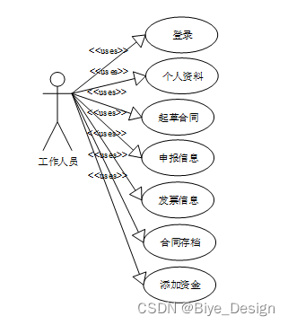 2. 系统功能还不够完善,无法提供丰富多彩的在线功能,只能实现用户管理、权限管理、部门管理、合同类型、起草合同、申报信息、发票信息等一系列功能。