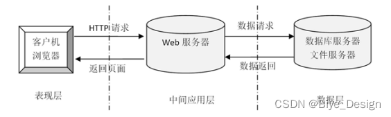 B/S模型由一个浏览器、一个网络服务器、一个数据库服务器三个层级构成。数据管理采用了当前大部分现有B/S系统的表现层、应用层和数据层,Web浏览器是为了满足用户的要求而设计的,在数据处理和逻辑过程中使用的中间应用层,从而形成分布式的运行模式。B/S体系结构的逻辑是:在前端完成的处理,将主要的业务逻辑交给后台,而前端只负责少量的请求、渲染等。由于因特网技术的迅速发展,B/S体系结构使得任何时间、任何地点都能访问到该系统。