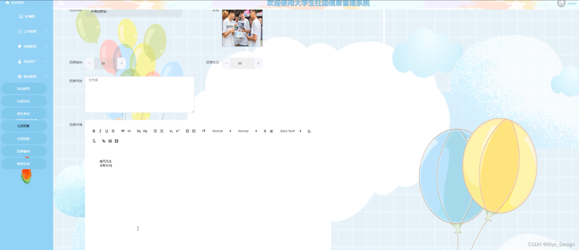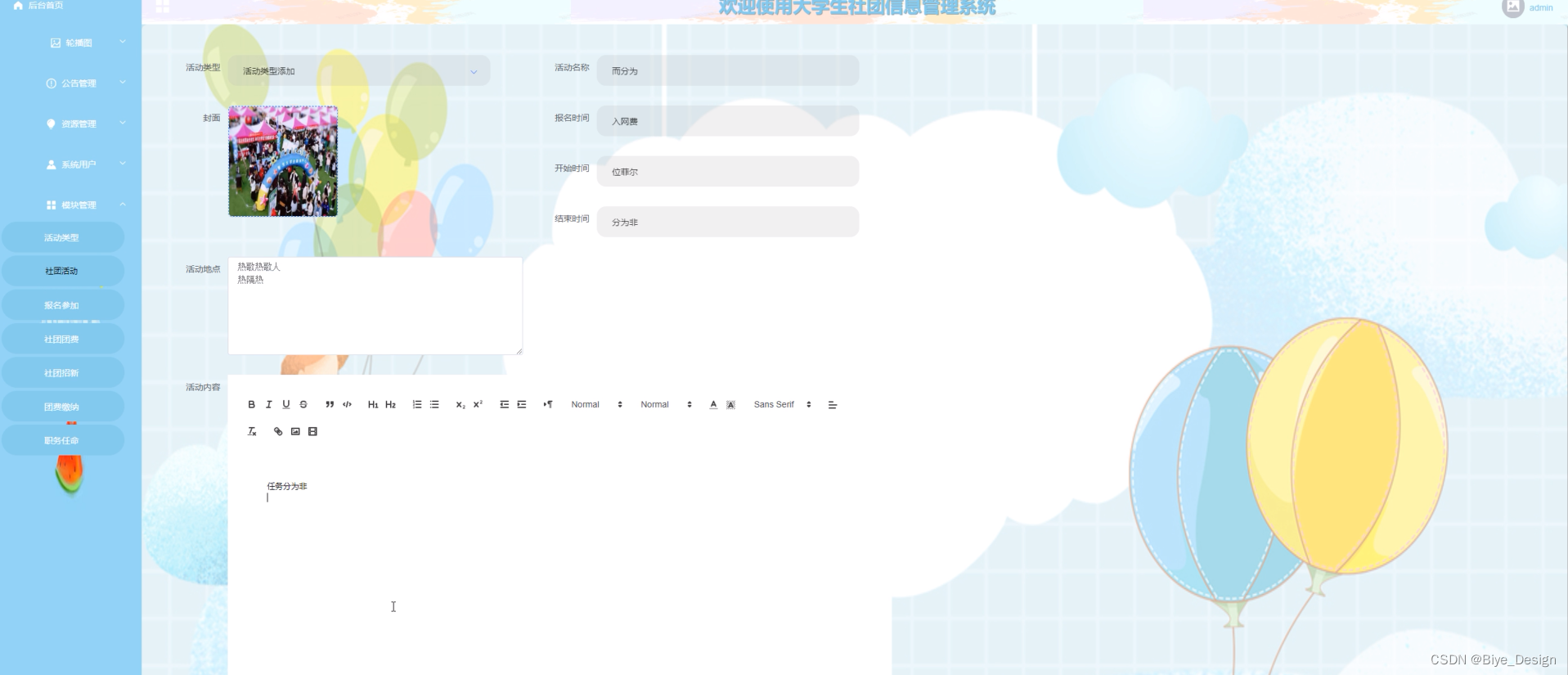 图5-4社团活动管理界面图