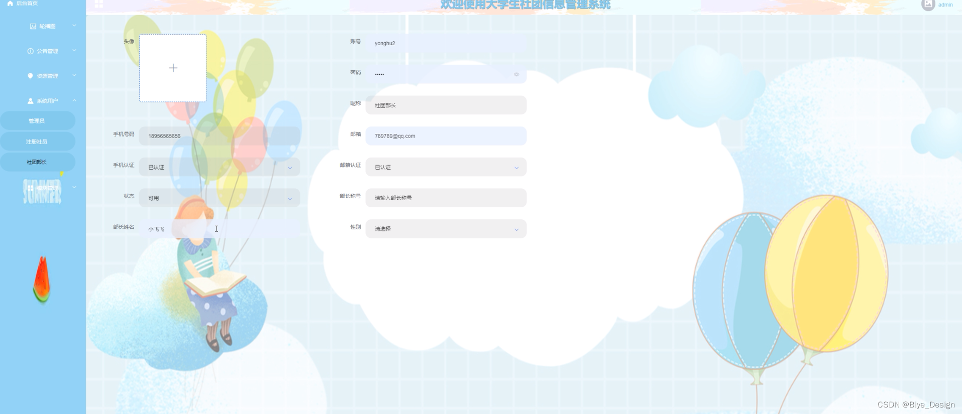 图5-3添加社团部长界面图