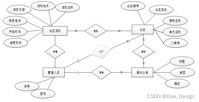 下面根据小区物业管理系统的数据库总E-R关系图可以得出小区物业管理系统需要很多E-R图,在此罗列出来一些主要的数据库E-R模型图。