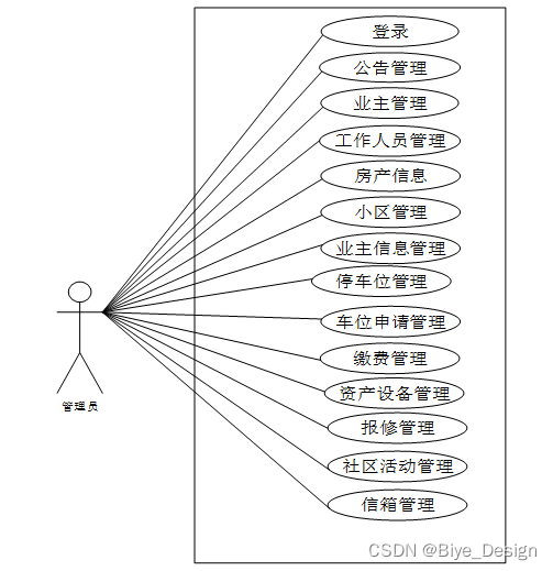 小区物业管理系统中管理员角色用例图如图2.2所示: