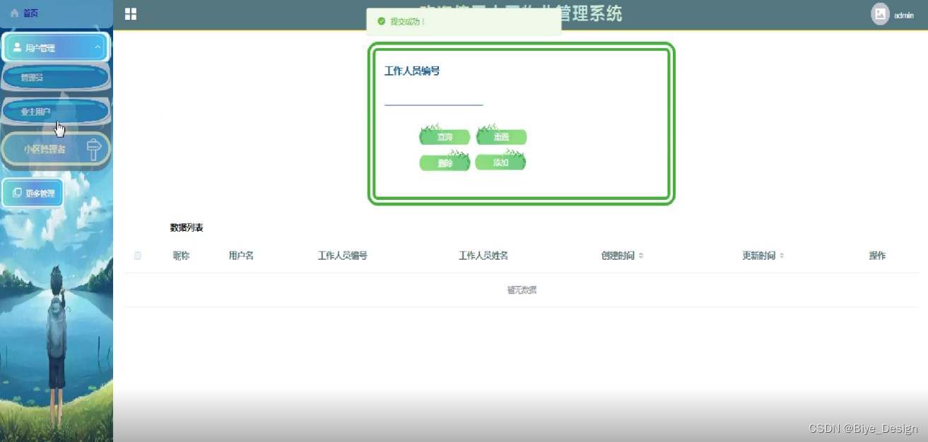 (2)小区管理者:管理员可以对小区管理者进行增删改查操作;