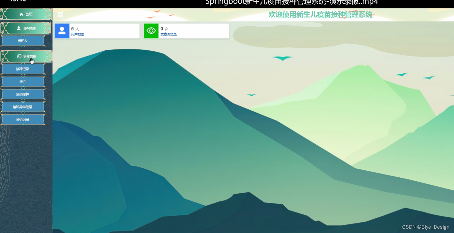 用户登录进入后台可以查看首页、用户管理(接种人)更多管理(接种记录、评价、预约接种、接种异常信息、预约记录)等内容,如图5-9所示。