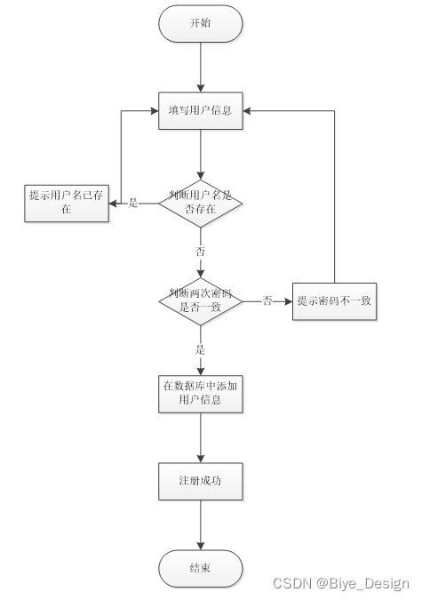 | 填写已存在的用户名 | 系统显示出提示信息,要求重新填写 | 一致 | |