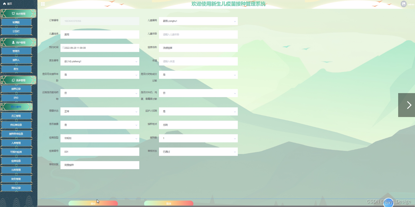 According to some infectious diseases endangering children's health, the newborn's planned immunization is to use safe and effective vaccines to carry out vaccination according to the specified immunization procedures to improve the newborn's immunity, so as to achieve the purpose of preventing corresponding infectious diseases. For a long time, people have been using the traditional manual method to manage files. This management method has many shortcomings, such as low efficiency and poor confidentiality. In addition, a long time, a large number of files and data will be generated, which brings many difficulties to search, update and maintain. Therefore, there is an urgent need for an efficient neonatal vaccination management system to manage children's immunization information, so as to improve the efficiency of neonatal vaccination management, realize scientific and formal management of information, and achieve the goals of rapid retrieval, convenient search, high reliability, large storage, good confidentiality, long life and low cost. Therefore, it is necessary to develop such a set of neonatal vaccination management software.