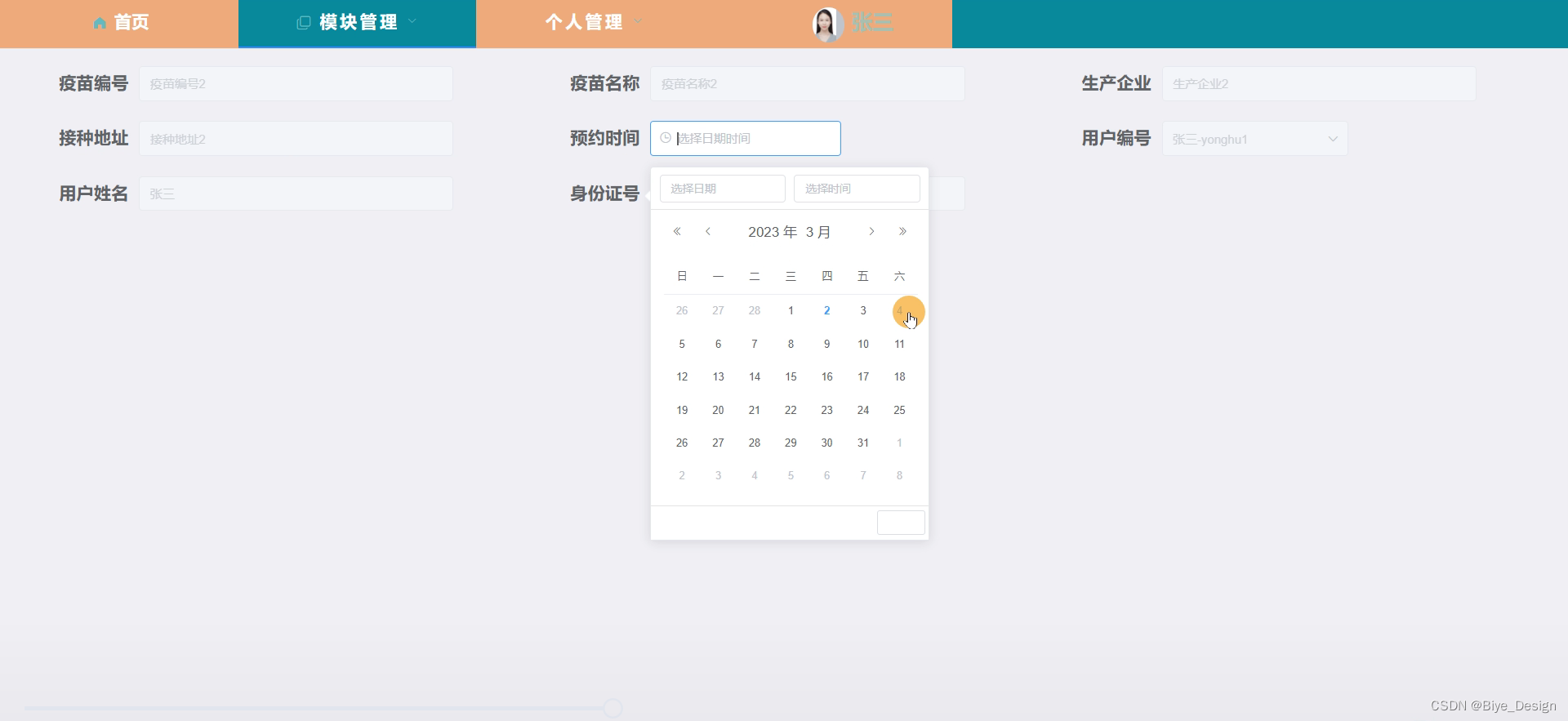 疫苗接种,在此页面中填写疫苗编号、疫苗名称、接种地址、接种用户信息等进行提交,如图5-5所示。
