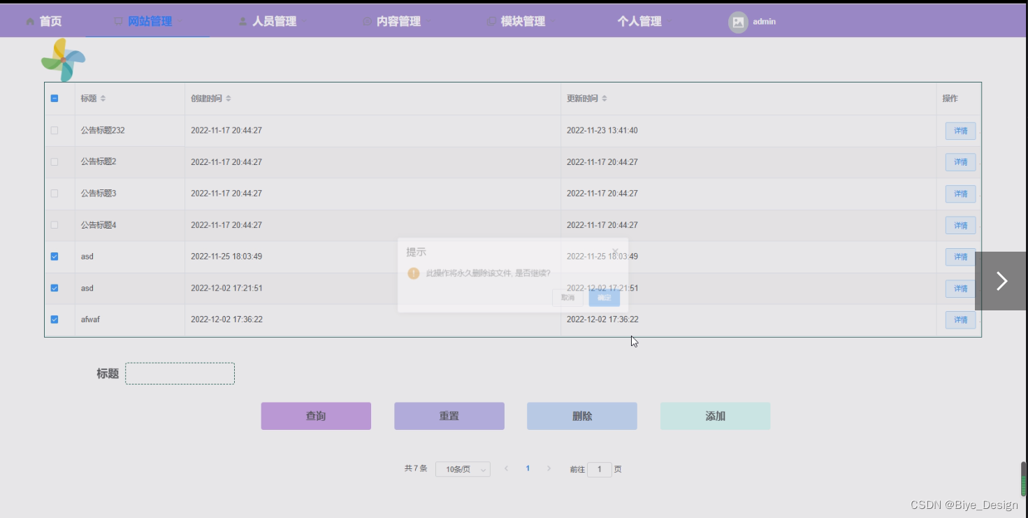 公告数据信息管理:发布、删除相关的公告栏数据信息。