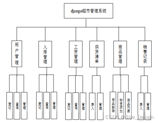 In the design of supermarket management system, Python programming language and Django technology are used, and MySQL is used as the system database in MVVM mode. The system has designed powerful functional modules, taking into account all aspects of supermarket management. These main function modules are home page, personnel management (administrator, cashier, tally clerk, supplier) module management (employee salary, commodity management, supply management, commodity warehousing, sales record), personal management and other function modules. Finally, through the system requirements analysis and system design method verification, the results show that the design has practical value. therefore, from the perspective of software design, the research theory, foundation, overall system layout and specific system design are studied in detail.