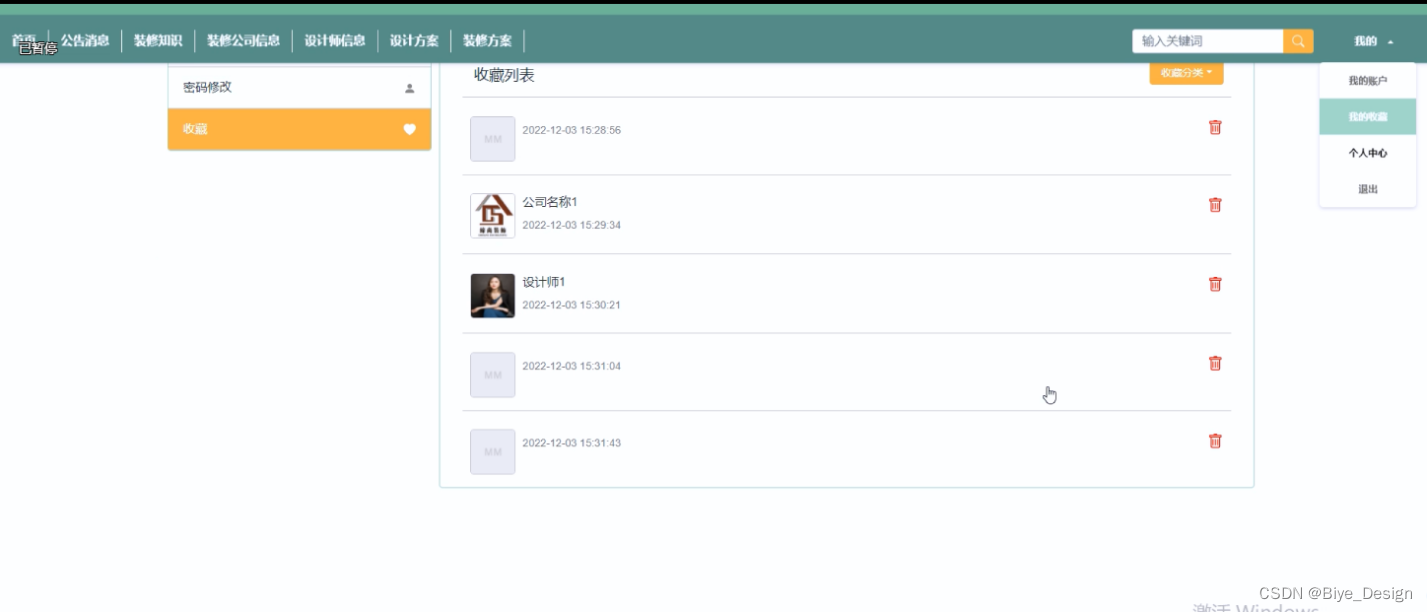 (8)个人中心:当用户点击右上角“我的”这个按钮,就会进入到对应的后台进行信息的管理了;