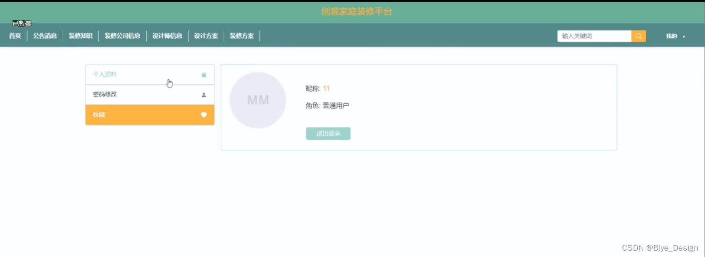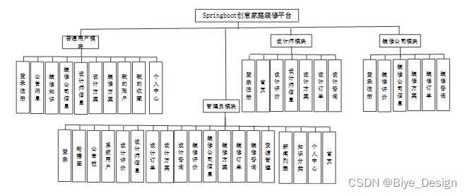 按照创意家庭装修平台的角色,我划分为了普通用户管理模块、设计师管理模块、装修公司管理模块和管理员管理模块这四大部分。