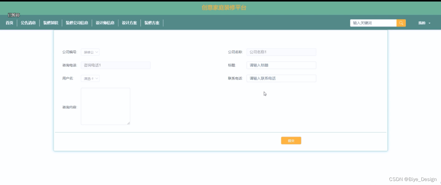 关键词:springboot技术;MYSQL;创意家庭装修平台