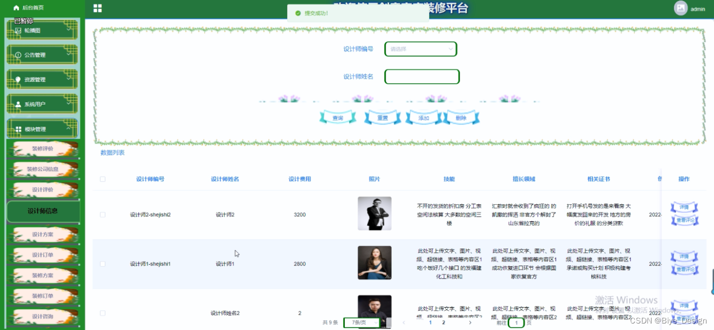 设计师管理模块: