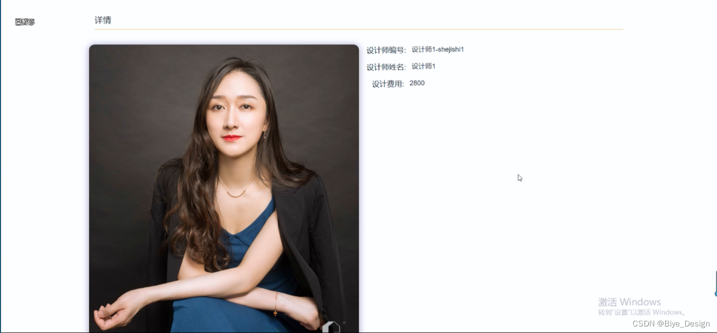 (5)设计师信息:在首页导航栏上我们会看到“设计师信息”这一菜单,我们点击进入进去以后,会看到所有设计师列表,我们选择想要了解设计师点击,查看某一个设计师信息;