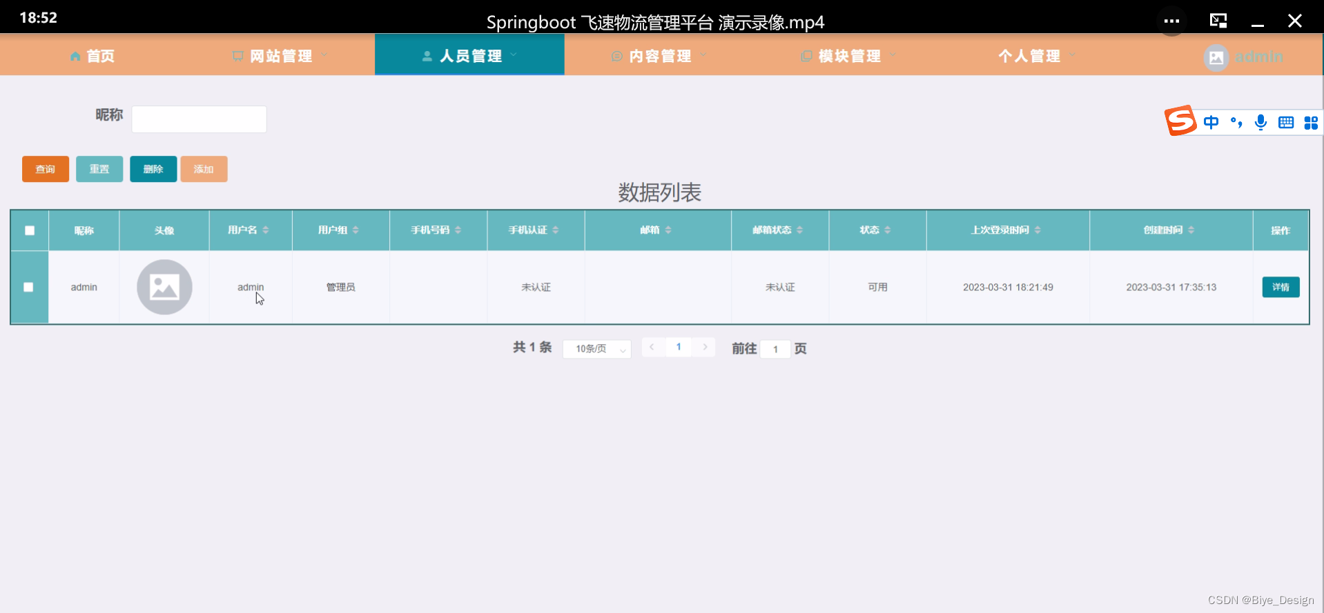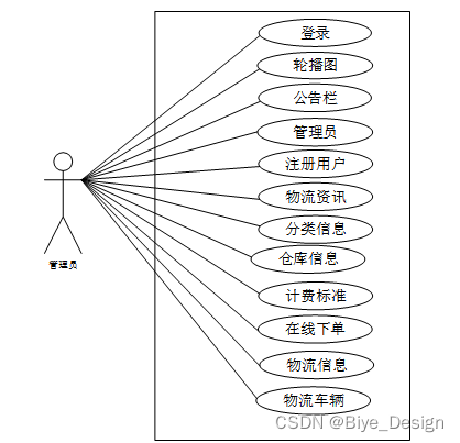 物流管理平台的理员拥有最高的权限,可以对用户信息、系统信息以及物流相关信息进行管控。