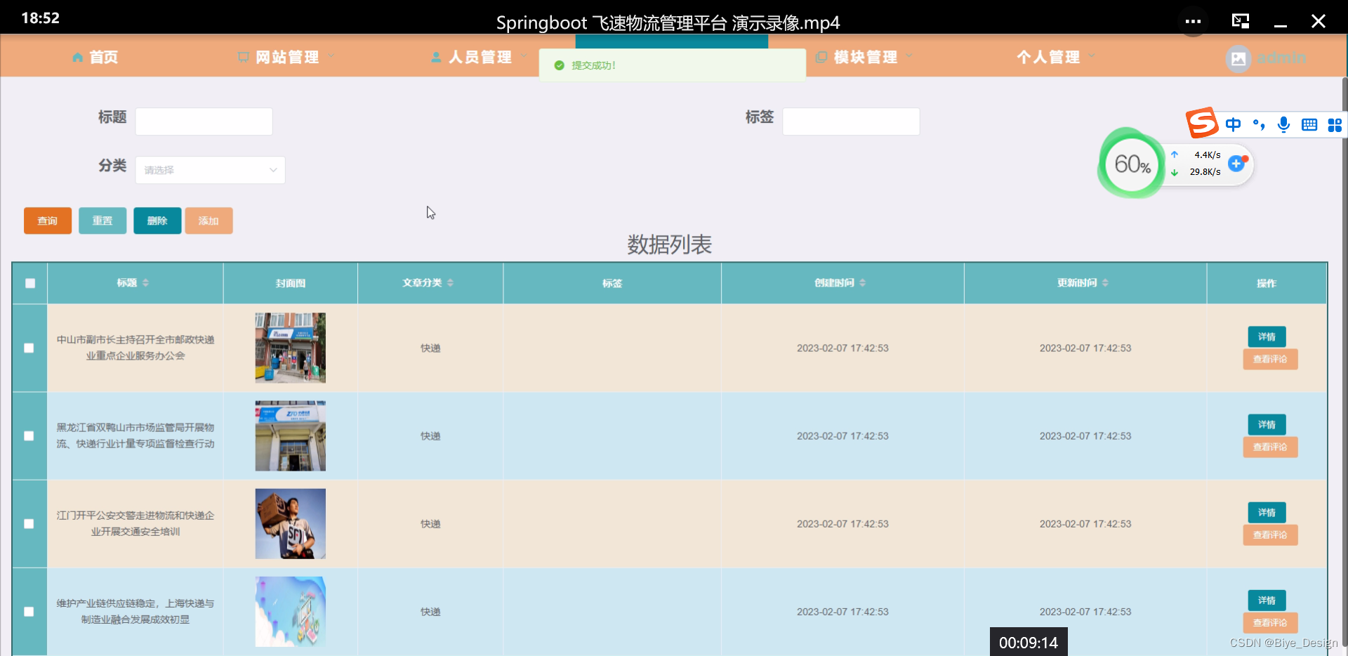 在经历了3年的疫情之后,线上购物这个方式备受欢迎,人们不用再去超市或者菜市场这种人口密集的地方去购买商品,只要通过手机或者电脑,通过线上提交订单,就会有人把所需商品送到家门口,很多实体店的商家也逐渐加入到网购的大军中来,既然是线上销售,那就代表了会有大量的货物需要进行配送,因此物流行业也迅速发展起来。现如今,物流行业已经相当成熟,用户可以根据自己的需求进行寄快递、查看物流信息,管理员进行查看寄件信息,进行填写物流等,这一系列环节,随着寄件信息的不断增多,管理难度也是越来越大,投入的人力、物力、财力更是非常的巨大的,而效率却是依然比较低,在当今追求高品质服务的社会,已经不能更好的为用户提供服务了,所以,之前的这种投入大量人工来手动记录管理的方式,已经没有办法适应物流行业的发展需求,通过信息技术来进行管理上的变革必不可少。因此利用当下火热的计算机技术来针对物流行业建设一个安全、可靠、专业的信息管理系统,能让管理的流程更加的便捷,能让投入的人力有所减少,能够让效率得到明显的提升,还能给用户提供更高品质的服务。