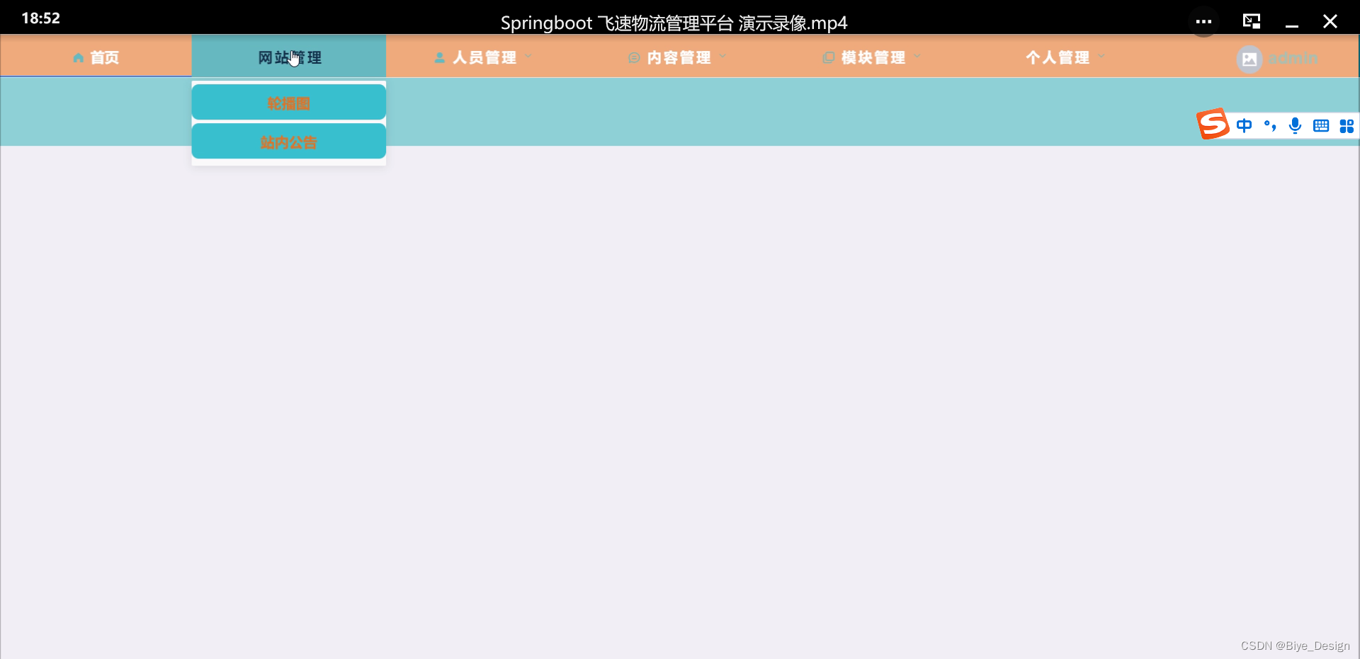 (1)网站管理:管理员点击“网站管理”这一菜单会显示轮播图、站内公告这两个子菜单,管理员可以对前台展示的公告消息和轮播图进行设置;