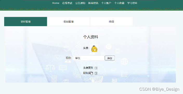 个人账户:修改个人信息,修改密码。