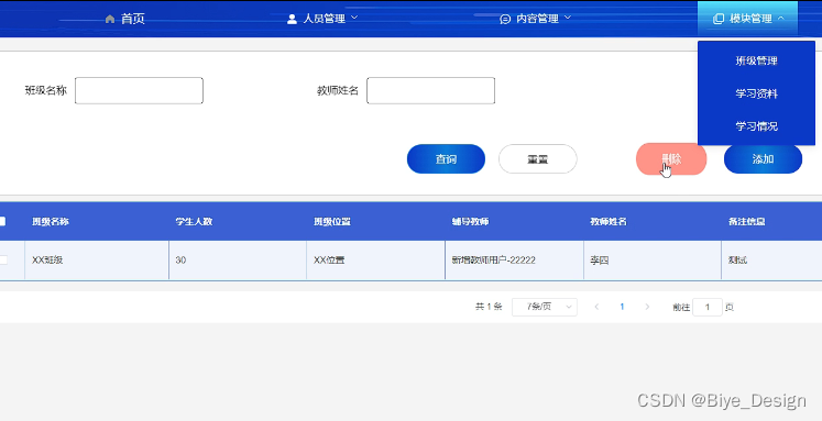 模块管理:对班级管理,学习资料,学习情况模块的信息管理。