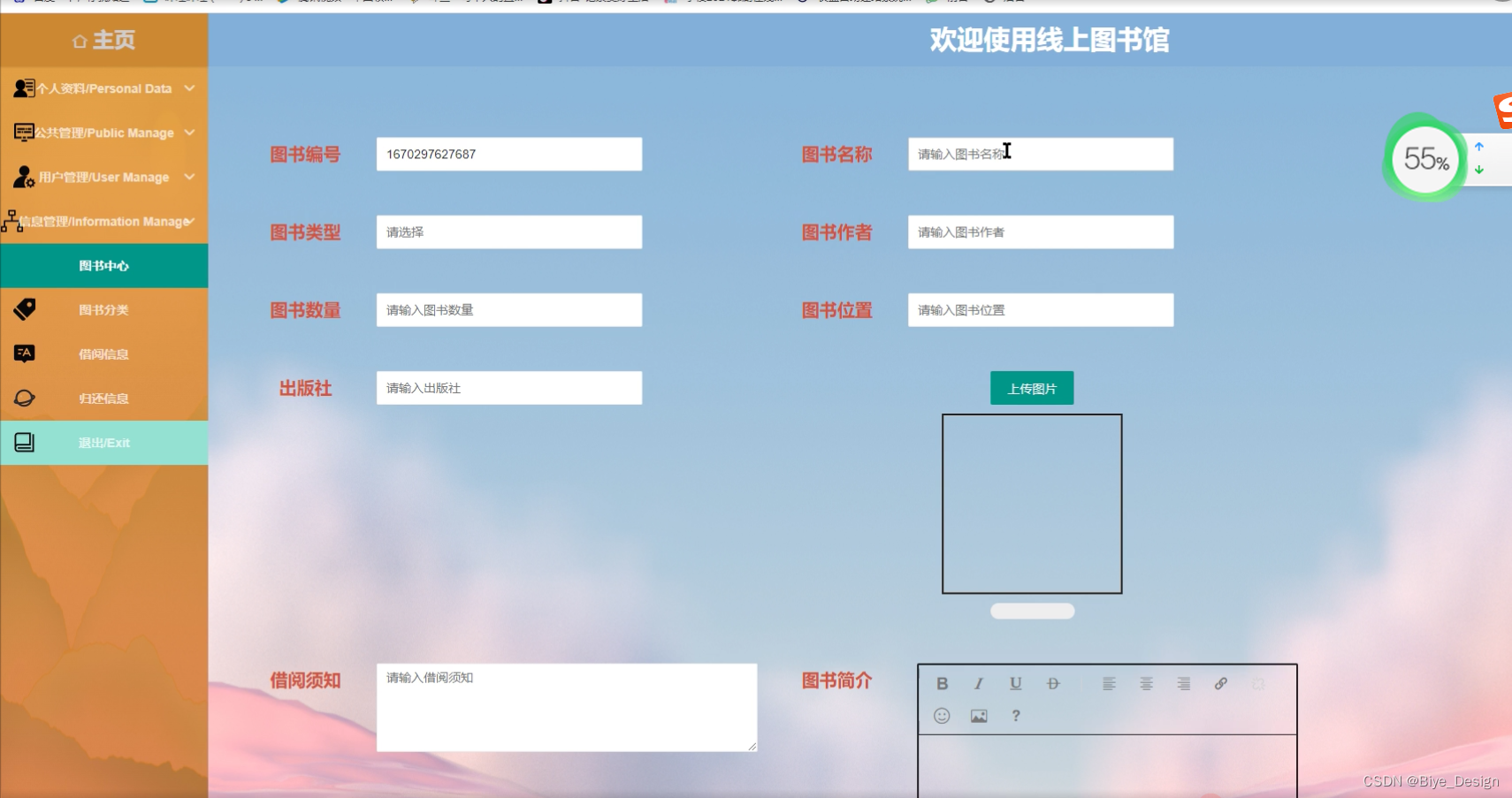 The front-end interface of the system mainly involves technologies such as Java, HTML, JQUERY, etc. Through these technologies, the beauty and dynamic effect of the front-end page can be achieved to make it conform to the aesthetic view of the masses. The main technologies used in the background are Java programming language, MySQL database, JSP and AJAX asynchronous interaction. The online library system based on AJAX asynchronous mode has solved the human resource The waste of material resources and time and the limitation of the depth of communication make the process of communication faster, more accurate and convenient, and complete the basic functions of the online library system: home page, personal data, public management (broadcast map, bulletin board) user management (administrator, general user) information management (book information, book information list) book center, book classification, borrowing information, and return information.