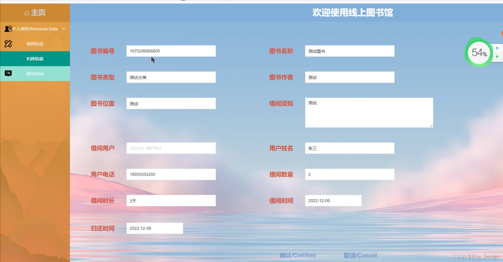 | 归还管理 (添加,修改,删除) | 输入正确信息 | 成功完成 |