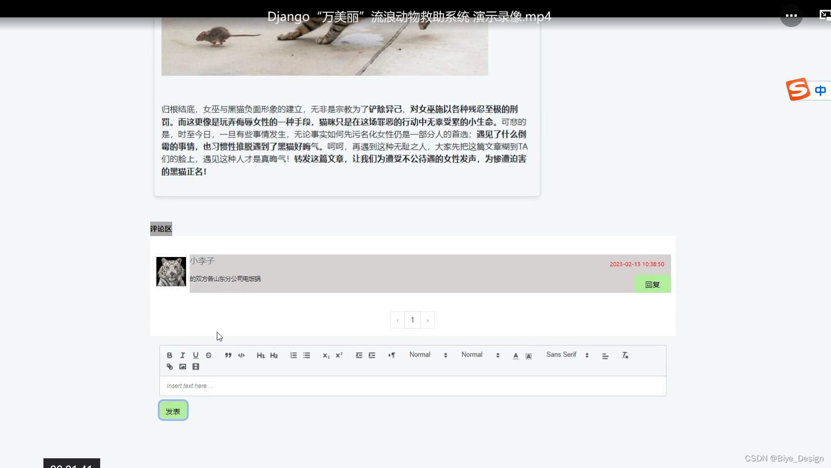 具体在系统设计上,采用了Django的结构,后台上采用Mysql数据库,是一个非常优秀的流浪动物救助系统。
